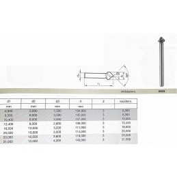 Kovametallinen 6-leikkuinen (Ø20mm 10 leikkuinen) upotus- ja viisteitystyökalu Yksittäin, koot 6-8-10-12-16-20 tai sarjana, sarjassa 6-8-10-12