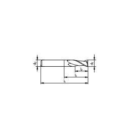 2-leikkuinen kovametallijyrsin, lyhyt malli Varsi joko HA (sileä) tai HB (Weldon) Alumiinin, messingin, kuparin, muovin ym. jyrsintään Jyrsimen mitat oheisessa kuvassa: D1 = halkaisija D2 = varren halkaisja L1 = kokonaispituus L2 = lastu-uran pituus L3 = max. leikkuupituus, lastu-ura+varren kevennys
