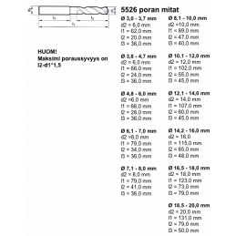 Edullinen Kobolttiseoksinen pikateräspora teräksen, ruostumattoman teräksen, valuraudan, alumiinin ja muiden ei-rautametallien ja muovien  poraamiseen Poran mitat oheisessa kuvassa