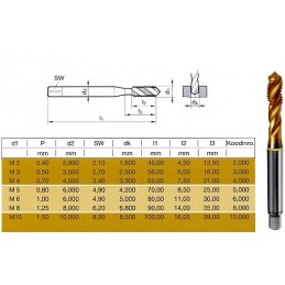 Yleiskierretappi kaikille metalleille. Teräksille, vetolujuudet alle 1000 Nm Ruostumattomille teräksille Alumiinille HSS-E-PM pulveripikateräs yhdessä TiN pinnoitteen kanssa - maksimaalinen kestoikä HUOM! 50° nousukulma vaatii koneelta hyvää synkronointia Osta 2kpl samaa kokoa - säästät 15% Kuvan taulukossa mitat.