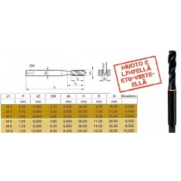 Yleiskierretappi kaikille metalleille. Teräksille, vetolujuudet alle 1000 Nm Ruostumattomille teräksille Alumiinille HSS-E-PM pulveripikateräs yhdessä TiN pinnoitteen kanssa - maksimaalinen kestoikä HUOM! 50° nousukulma vaatii koneelta hyvää synkronointia Osta 2kpl samaa  kokoa - säästät 15% Kuvan taulukossa mitat.