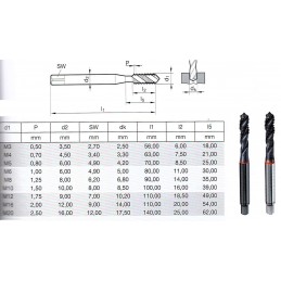 Yleiskierretappi kaikille metalleille. Teräksille, vetolujuudet alle 1000 Nm Ruostumattomille teräksille Alumiinille HSS-E-PM pulveripikateräs yhdessä TiN pinnoitteen kanssa - maksimaalinen kestoikä HUOM! 50° nousukulma vaatii koneelta hyvää synkronointia Osta 2kpl samaa kokoa - säästät 15% Kuvan taulukossa mitat.
