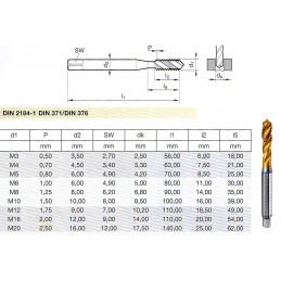 Yleiskierretappi kaikille metalleille. Teräksille, vetolujuudet alle 1000 Nm Ruostumattomille teräksille Alumiinille HSS-E-PM pulveripikateräs yhdessä TiN pinnoitteen kanssa - maksimaalinen kestoikä HUOM! 50° nousukulma vaatii koneelta hyvää synkronointia Osta 2kpl samaa kokoa - säästät 15% Kuvan taulukossa mitat.