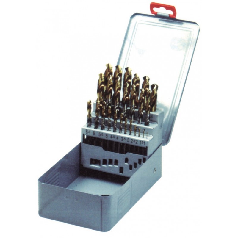 TiN kärkipinnoitetut porat edullisina sarjoina. Koostuu art. 9651 porista 5 vaihtoehtoa: 1,0 - 13,0 mm 0,5 mm jaolla, 25 kpl 1,0 - 10,0 mm 0,5 mm jaolla 19 kpl 1,0 - 10,5 mm 0,5 mm jaolla + kierrekoot 3,3 - 4,2 - 6,8 - 10,2 1,0 - 5,9 mm 0,1 mm jaolla 50 kpl 6,0 - 10,0 mm 0,1 mm jaolla 41 kpl